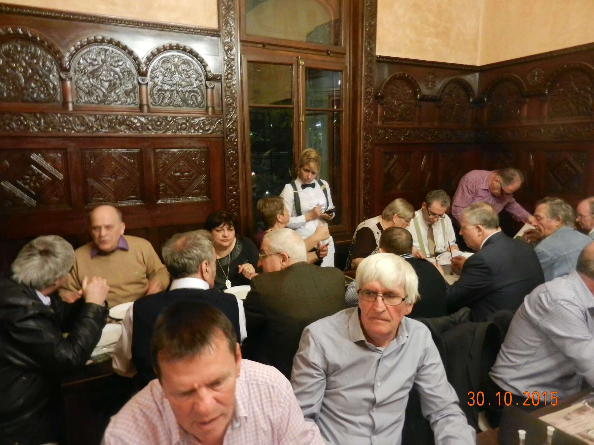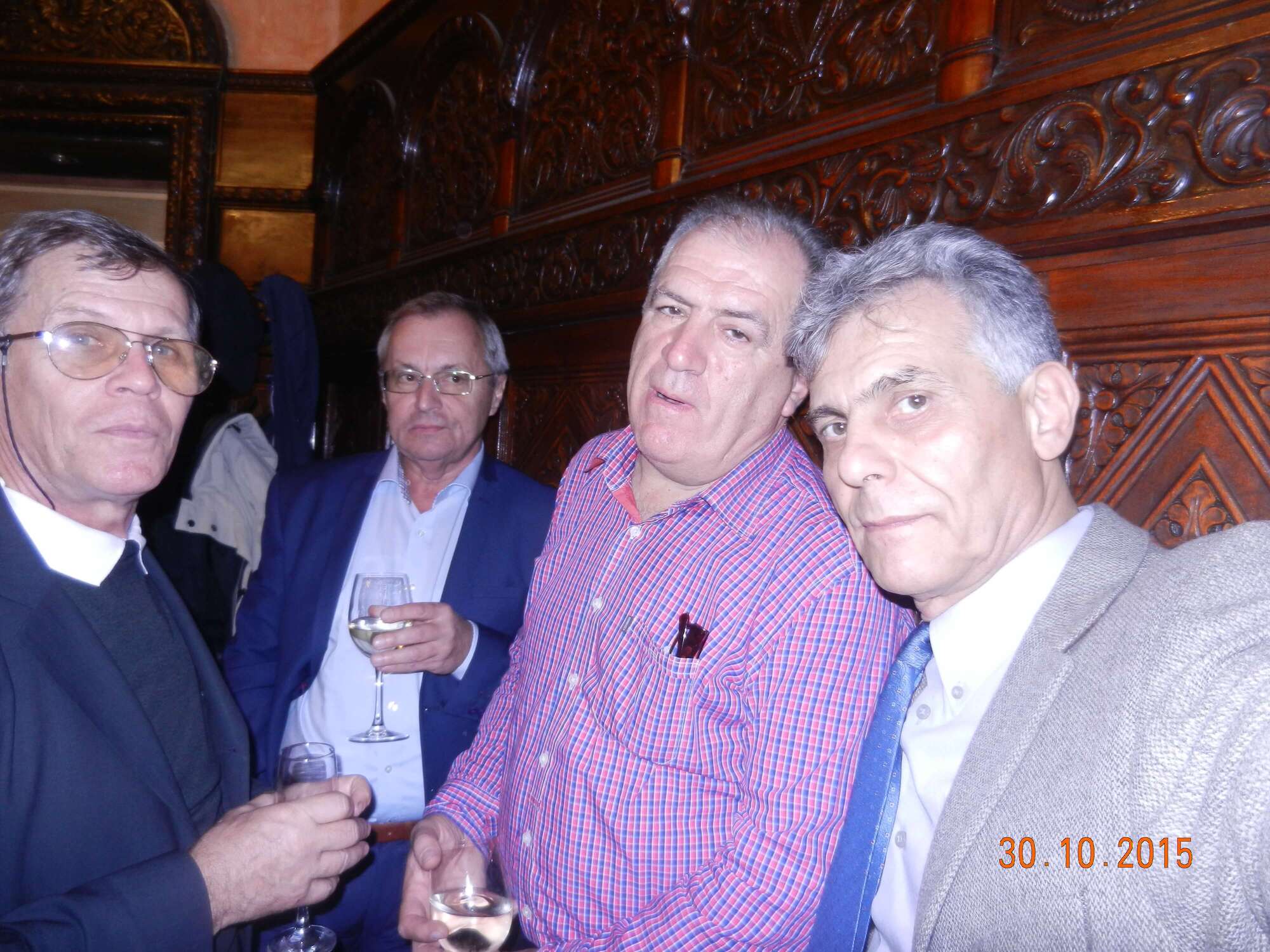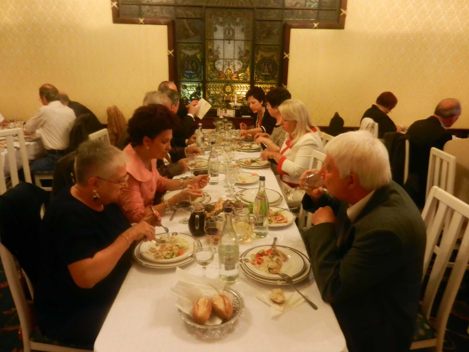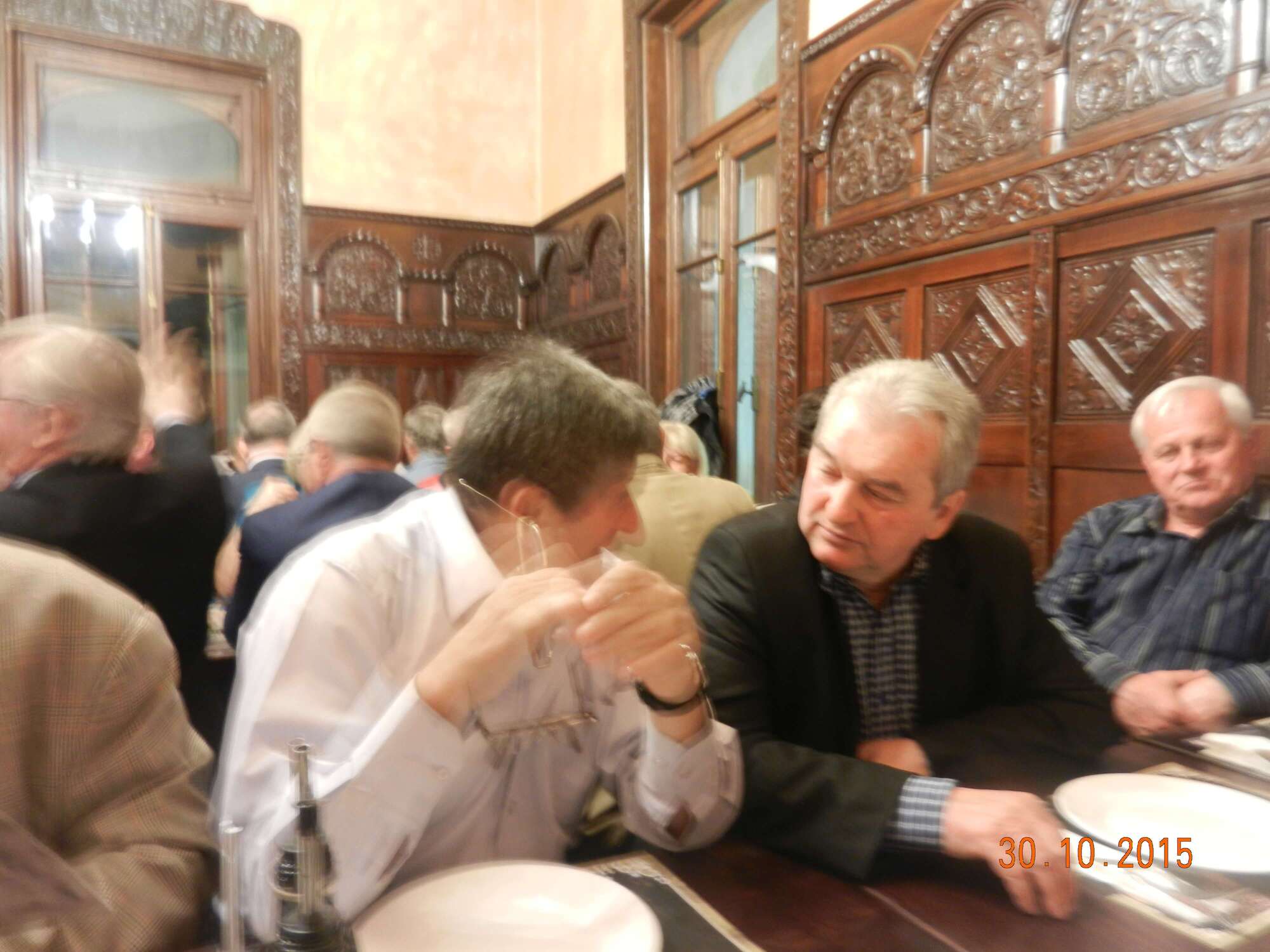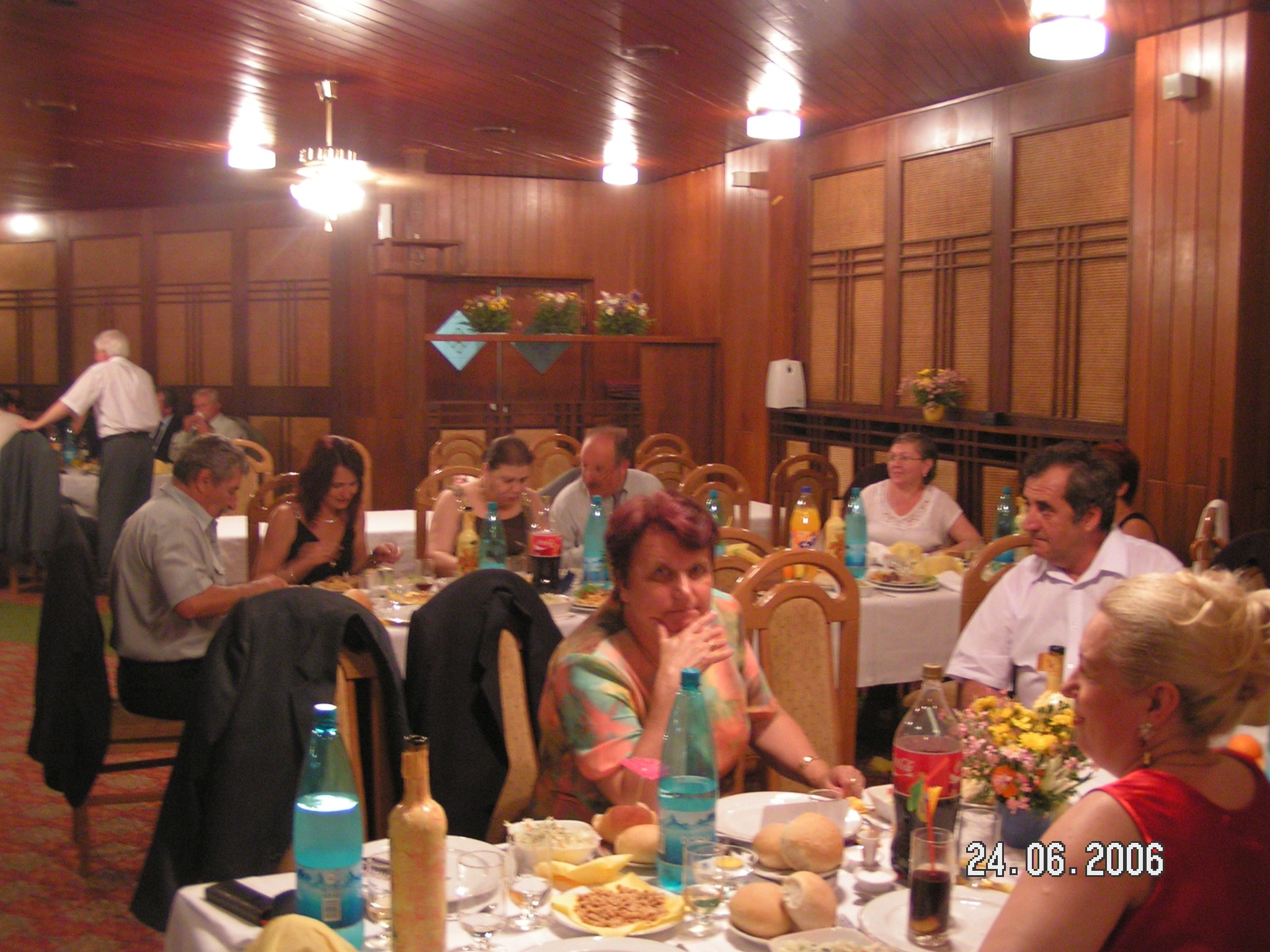 Participare numeroasă. Probabil ca urmare a timpului mai lung de la ultima întâlnire sau a mobilizării eficiente. Sala de la restaurant a fost cam mică și am stat cam înghesuiți. Pe parcurs ne-am adaptat. Am fost cu toți mobili și au fost create spații. Cântece de petrecere din vremuri de demult. Echipa grea cu Tache, eternul Tache, prim solist, Gică Iorga solist, armonie percuție, clape și ce mai e nevoie, Barbu Mihai și Gheorghiu din partea producătorului, Dopan Silviu de la finanțator (se observă evident în imagini) și Bulache Ungureanu, regizorul, care o cam luase pe ulei. Doxan Gabriel, Gigi Diaciuc, Ilie Pravă, Tuță Marin (termina ce mai avea de mâncat ) și Am trecut la amintiri și cântecele noastre. Au rămas băieții de cursă lungă. Cu puțină viteză luată de la vinul restaurantului și in special de la cel adus de noi am început să ne amintim de cântările pe care le făceam in vremea studenției. Tică Tache făcea eforturi de mobilizare la cântat. Cam greu cu noi.
