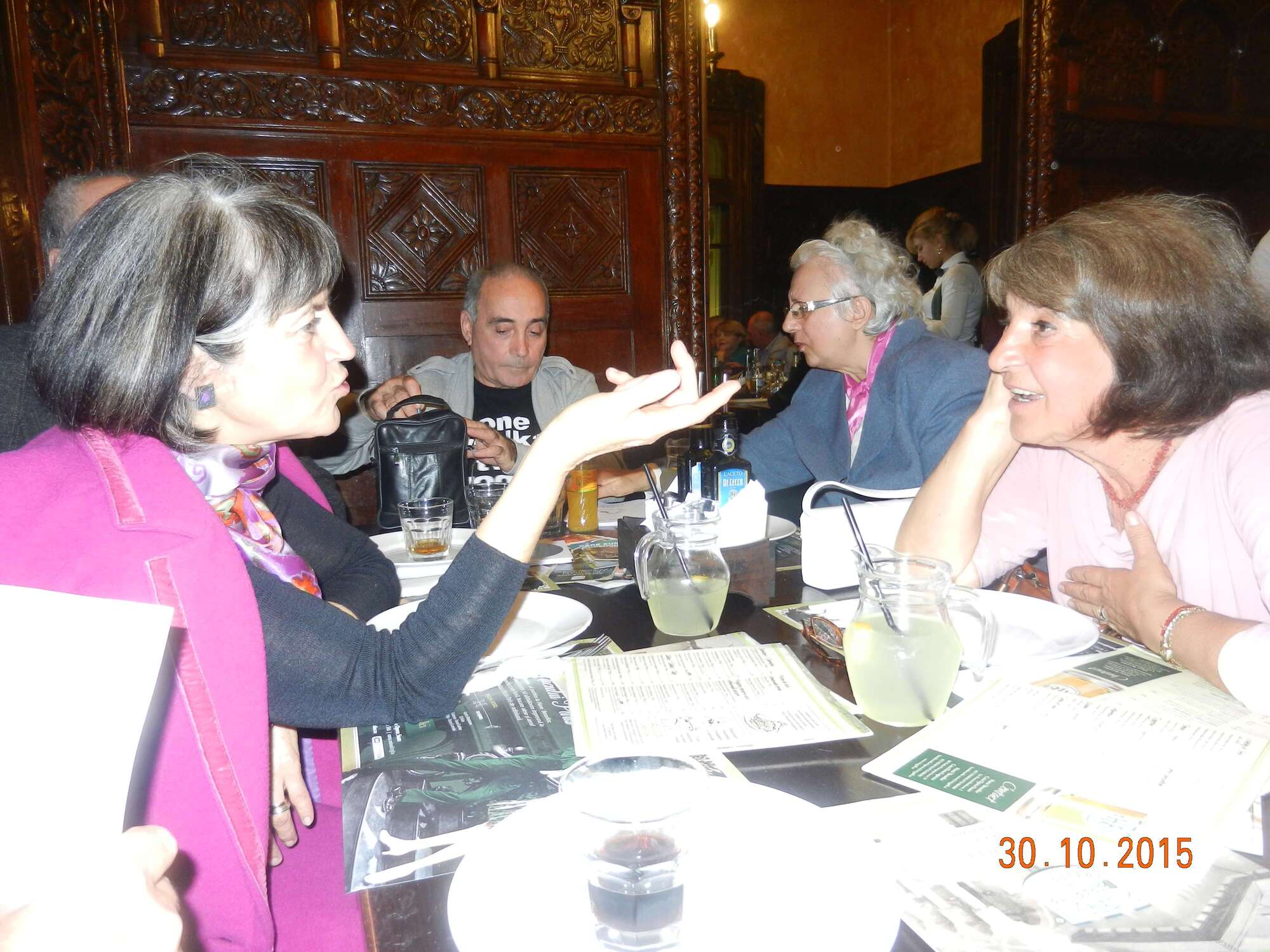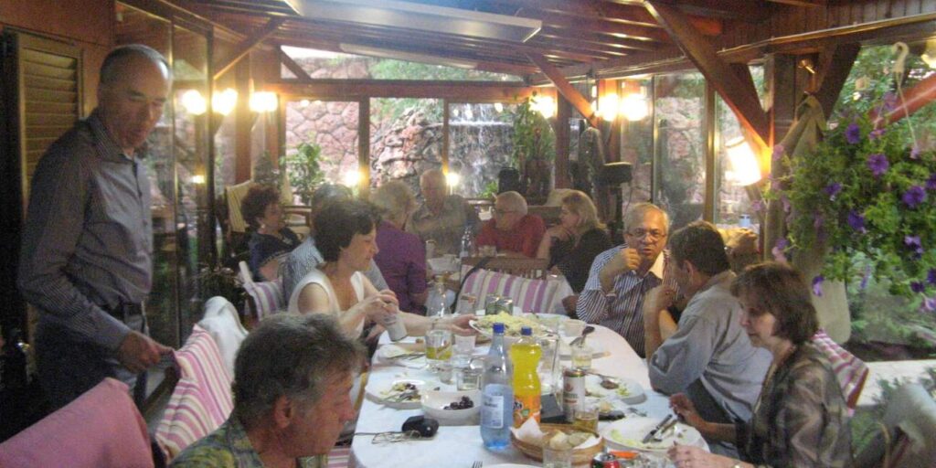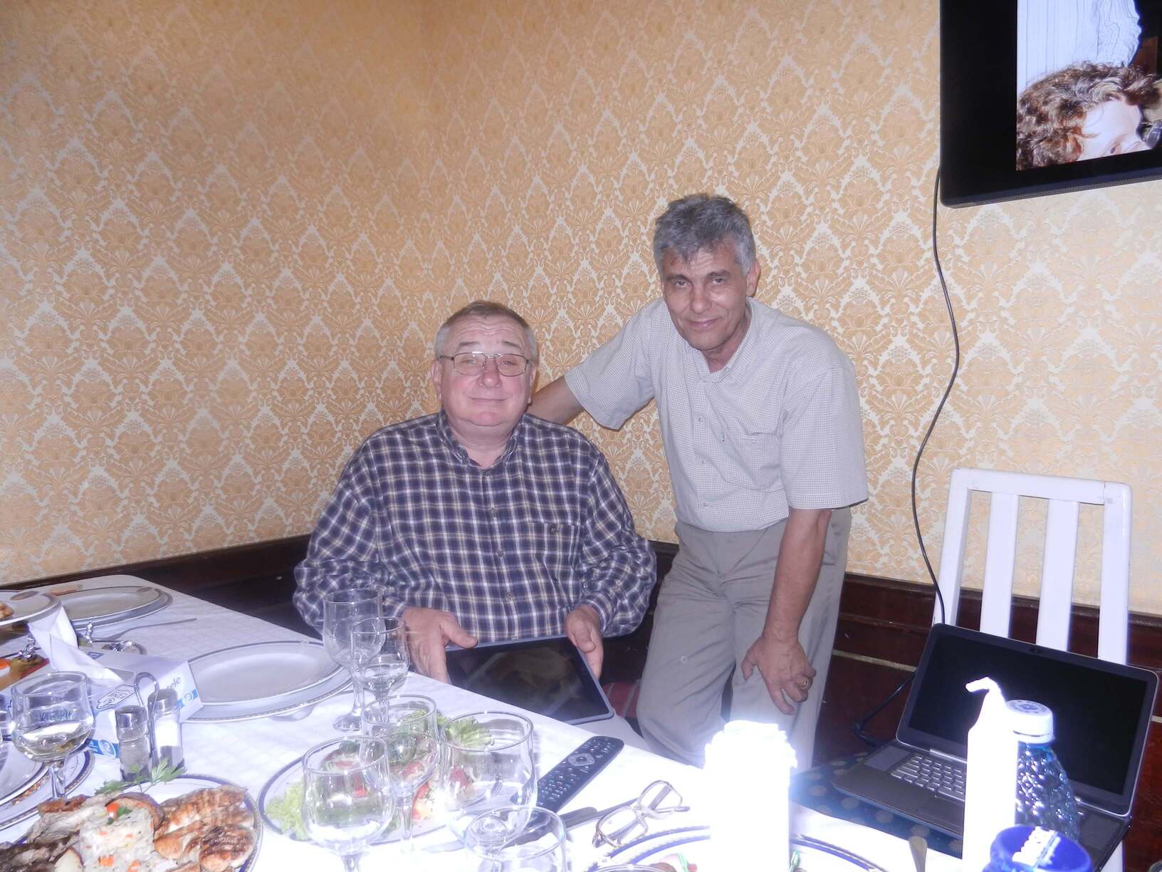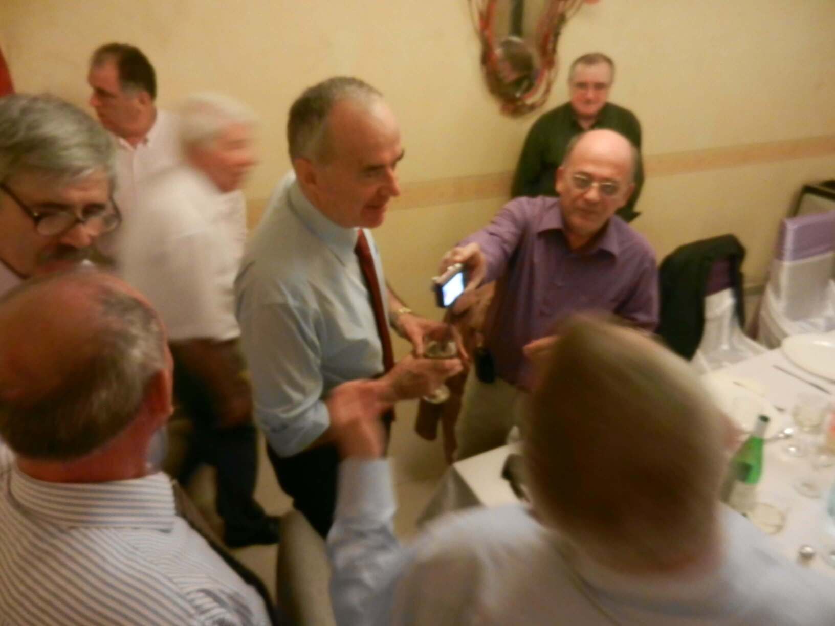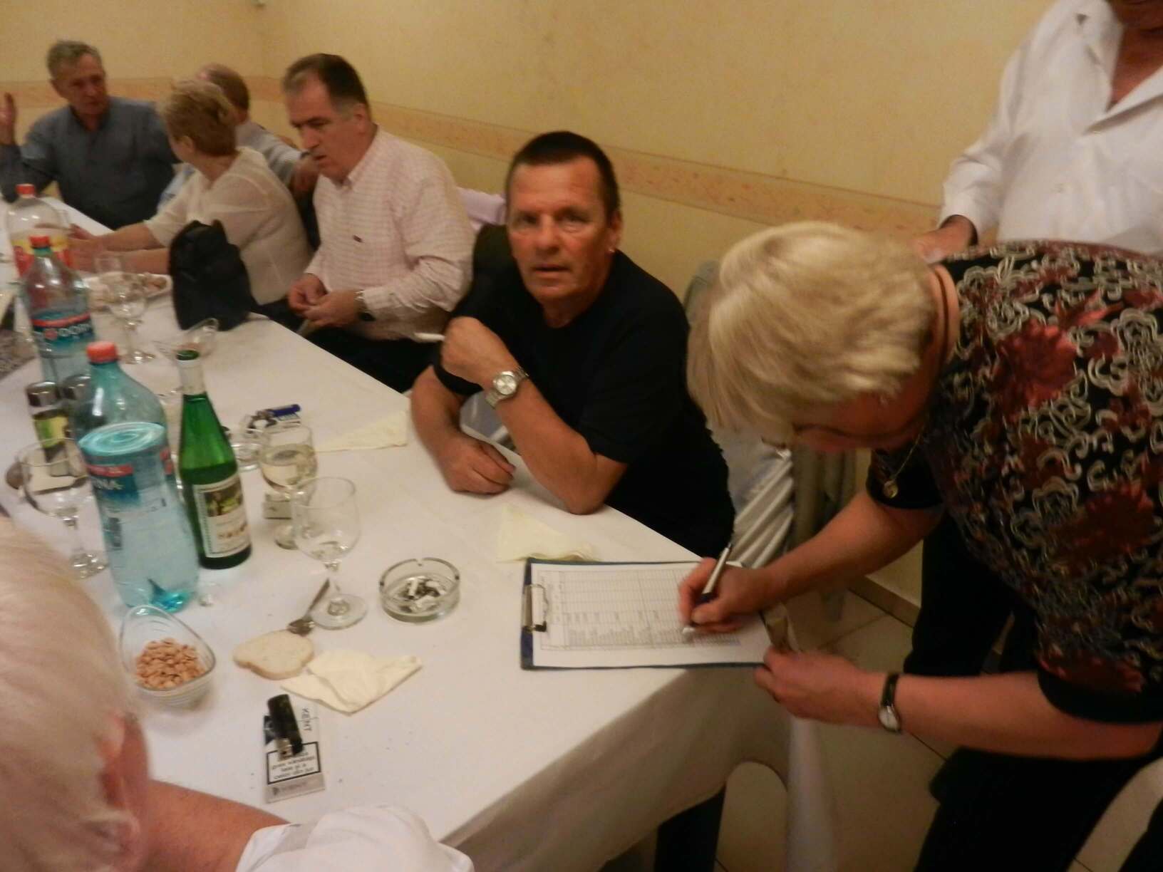 Participare numeroasă. Probabil ca urmare a timpului mai lung de la ultima întâlnire sau a mobilizării eficiente. Sala de la restaurant a fost cam mică și am stat cam înghesuiți. Pe parcurs ne-am adaptat. Am fost cu toți mobili și au fost create spații. Cântece de petrecere din vremuri de demult. Echipa grea cu Tache, eternul Tache, prim solist, Gică Iorga solist, armonie percuție, clape și ce mai e nevoie, Barbu Mihai și Gheorghiu din partea producătorului, Dopan Silviu de la finanțator (se observă evident în imagini) și Bulache Ungureanu, regizorul, care o cam luase pe ulei. Doxan Gabriel, Gigi Diaciuc, Ilie Pravă, Tuță Marin (termina ce mai avea de mâncat ) și Am trecut la amintiri și cântecele noastre. Au rămas băieții de cursă lungă. Cu puțină viteză luată de la vinul restaurantului și in special de la cel adus de noi am început să ne amintim de cântările pe care le făceam in vremea studenției. Tică Tache făcea eforturi de mobilizare la cântat. Cam greu cu noi.