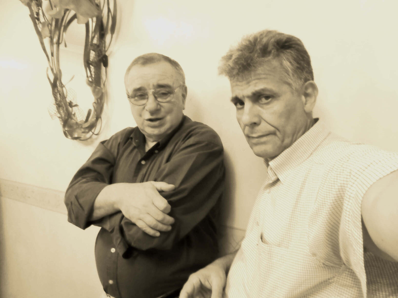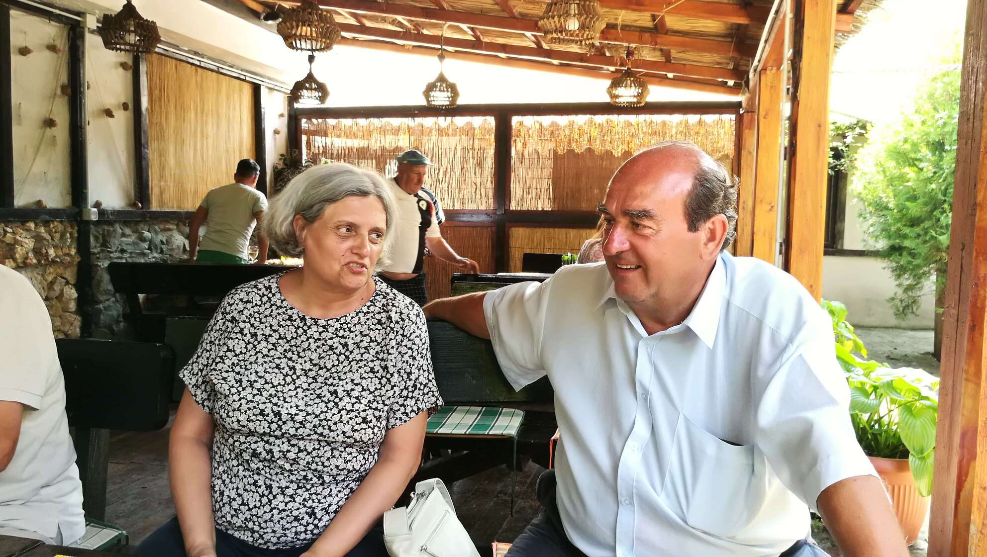 A avut parte aici de consumatori de calitate, după cum se vede, Sandu Păcălici și Gigi Topîrceanu veniți de departe de la Constanța. Se lucra la două damigene.